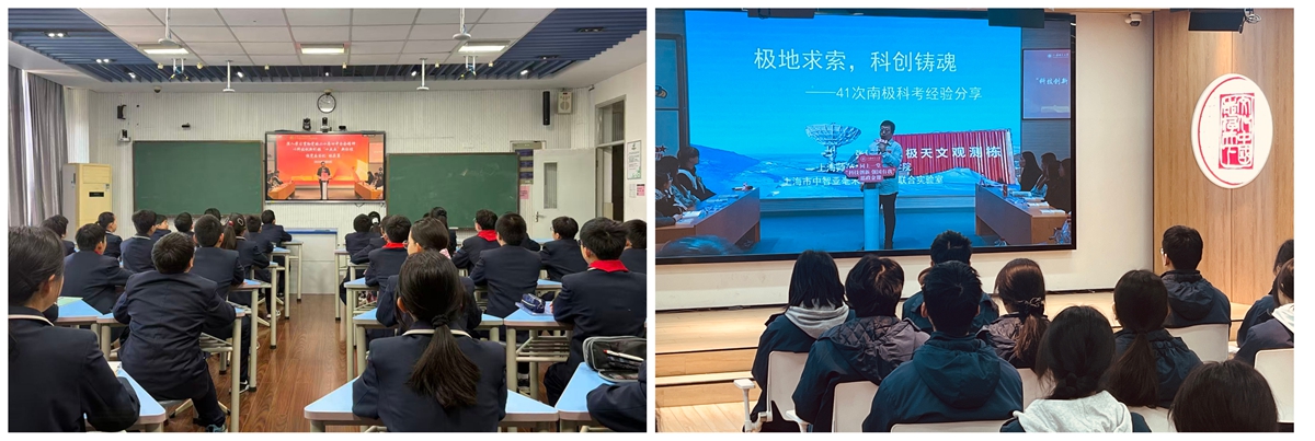 在交流互动环节,师生围绕“科学素养和科创精神”“科创兴趣与国家需求”“科学探索的价值意义”等问题进行交流互动。同学们表示此次思政课让他们受益匪浅,进一步激发了他们为科技强国建设贡献青春力量的责任感和使命感。2023级物理学本科生陈诗怡谈到,林书记勉励我们要笃学奋进、勇担使命,以青春之力助力国家科技持续腾飞,张毅教授执着的探索精神与潜心钻研的态度激励我们永葆探索热情,深耕科学研究,以实干担当助力国家科技不断向前。2024级艺术管理姚懿文谈到,林书记的授课让我明晰了科技创新在“十五五”的核心引领作用,张教授的极地科考分享,彰显了科研人不畏艰险、勇攀高峰的精神。未来我将以影像为笔、以科技为翼,用专业讲好中国科技创新故事,传播强国声音,践行青年使命。上海市实验学校六年级(3)班王希羽谈到,听了今天的“同上一堂思政课”让我明白,科技强国不是遥不可及的梦想,而是藏在我们每天的学习和生活里。以后我要多观察、多动手,用自己的实际行动为祖国的科技发展添砖加瓦!上海市中国中学高二(1)班王若水表示,要将今天的课程内容融入自己的学习生活,不仅要胸怀祖国,更要关注地球家园,为构建人类命运共同体贡献青春力量。
