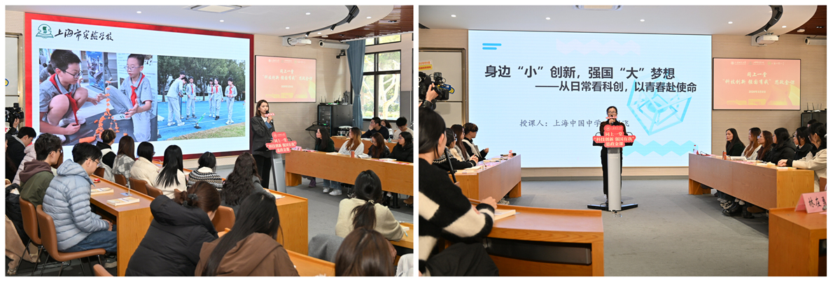 本次思政课以上海师范大学为主课堂,联动上海市实验学校和上海市中国中学,采用现场授课和网络直播的线上线下相结合的形式,面向大中小学生同上一堂思政课,既有理论解读,有实践阐释,又有启发式师生互动。师生们一同探寻科技创新的时代密码,引导学生深刻理解科技强国这一国家战略的深刻内涵,明晰新时代青少年的使命担当。