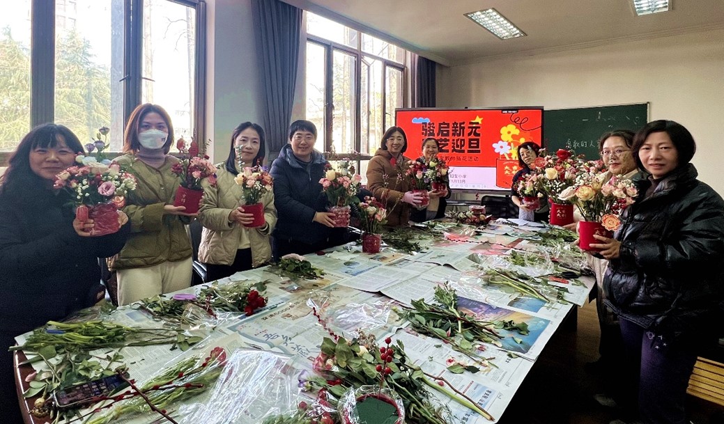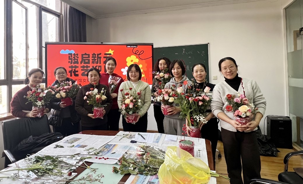 为丰富女馆员的生活,传递人文关怀,1月13日,图书馆妇女小家举办“骏启新元·花艺迎旦”女馆员插花活动。