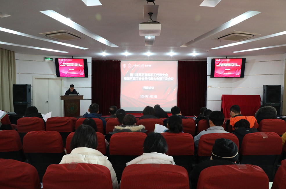 1月23日上午,图书馆第五届教职工代表大会暨第五届工会会员代表大会第三次会议在徐汇校区老图书馆第一观摩厅召开。本届教代会、工代会代表,列席代表出席大会,共商发展大计,擘画图书馆“十五五”时期高质量发展蓝图。会议由图书馆工会主席穆卫国主持。