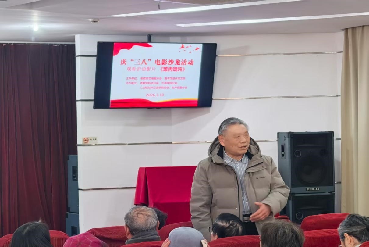 2026年3月10日 ,在庆祝三八国际劳动妇女节之际,图书馆退休党支部与校老教协艺继图分会继续共同举办庆“三八”电影沙龙,放映了沪语影片《菜肉馄饨》。参加活动协办的还有校老教协的机关分会、人文和对外汉语学院分会、外语学院分会、校产后勤分会等单位。