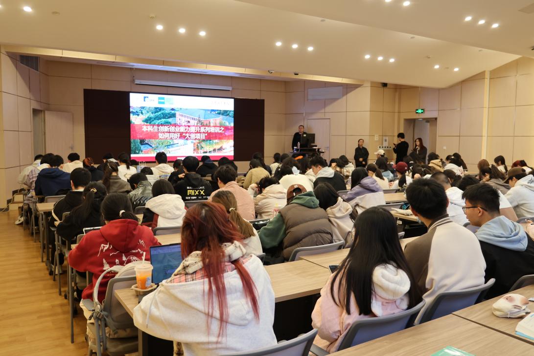 冬日砺剑,梦想启航。11月17日下午,由创新创业学院主办的本科生科创素养与创新能力提升计划第二场“创新教育赋能成长,从0到1走进‘大创’全流程”主题讲座,在奉贤校区科技楼B101教室顺利举行。
