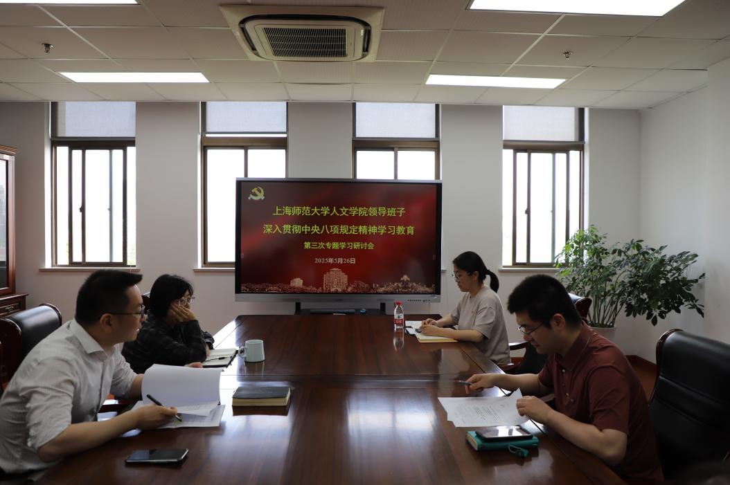 5月26日上午,人文学院党委理论学习中心组深入学习习近平总书记关于加强党的作风建设的重要论述和中央八项规定及其实施细则精神,坚持原原本本、逐章学习,重点学习《习近平关于加强党的作风建设论述摘编》第六、七章,深刻领悟新时代加强党的作风建设“抓什么”的明确要求,要进一步深化问题查摆,始终坚持严的基调、严的措施、严的氛围,以优良作风作引领,以严明纪律强保障,不断推动党的作风建设取得新成效。