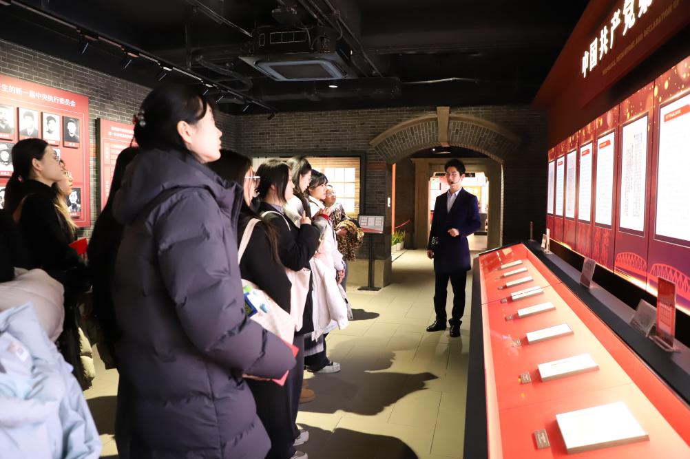 为进一步锤炼党员党性修养,引导党员深刻铭记入党誓言,矢志践行初心使命,12月17日下午,上海师范大学人文学院23名新发展党员在学院党委副书记、副院长戚静的带领下,走进中共四大纪念馆,开展了一场沉浸式、体验式的入党宣誓活动,学院组织员李妍、2024级本科辅导员傅蓉一同参加活动。